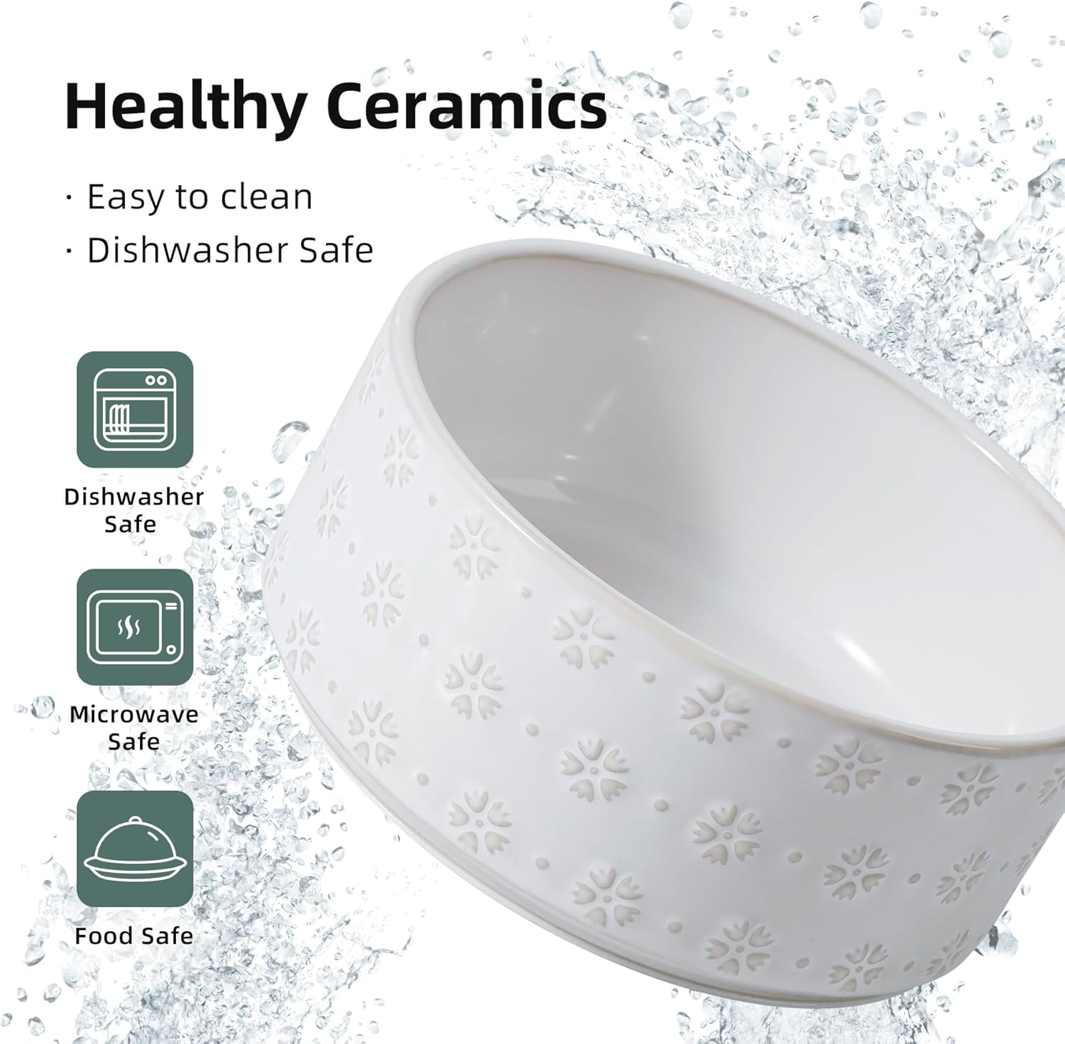 Havniva 7.3inch Ceramic Raised Dog Bowl Set, Elevated with Acacia Wood Stand