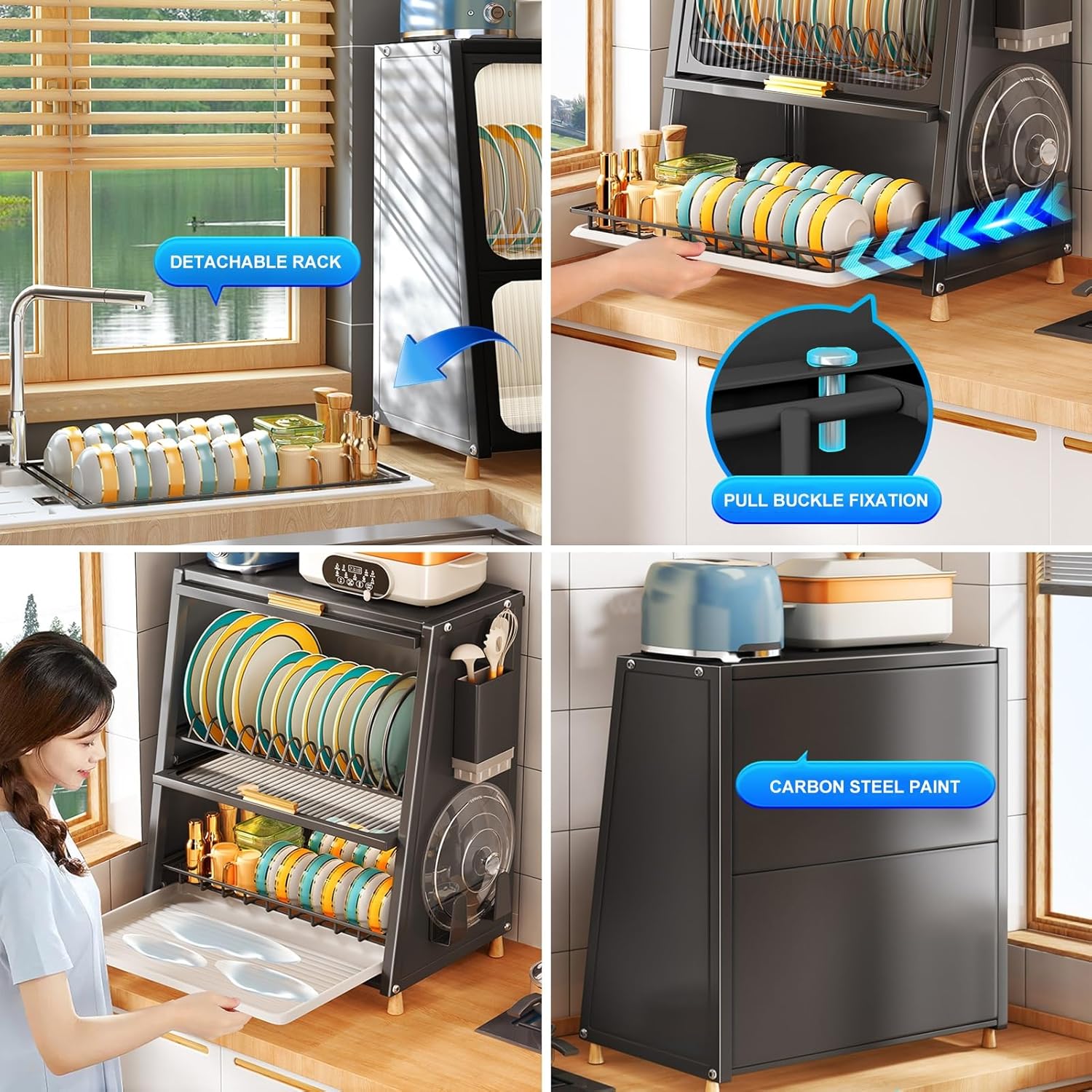 The kitchen organizer rack perfect fit the under sinks, countertops, bathrooms, offices, cabinets, kitchens, and other small places. Modern and simple style design can be matched well with most household style. Make your kitchen work easier. the drying rack for kitchen counter is a cool for family. nice kitchen utensils, beautiful home kitchen decorations. Product Information Product material: Stainless steel Product Size: 40.5x31x56.5cm/15.9x12.2x22.2" Package contents: Kitchen organizer rack*1