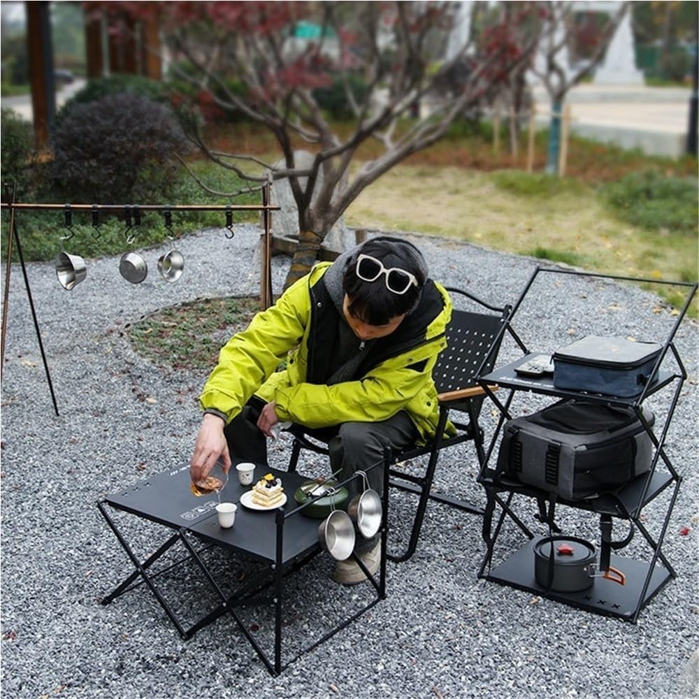 Made from premium aluminum alloy, this lightweight yet rugged shelf is designed to hold up under heavy loads—offering dependable support wherever you need it.The 3-tier storage shelf configuration maximizes vertical organization, keeping your camping gear, cooking utensils, condiments, or tools neat and accessible. Whether you're grilling by the lake, prepping breakfast at your campsite, or setting up a temporary kitchen for a tailgate party, this rack brings structure to your setup.Engineered for reinforced stability, the foldable camping shelves feature a thoughtfully designed support system that resists wobbling and warping—no matter the terrain. Ideal for kitchen camping, picnics, BBQs, tailgating, indoor storage, or patio use, this versatile shelf adapts to any environment. Whether you're a weekend camper, outdoor chef, or just love functional design, this folding shelf is the smart storage solution that travels with you.Reminder:1.Other items on the product are for display only and are not included in the product.2.As the product is measured manually, please refer to the actual product, thank you for your understanding.3.Due to different monitors, there will be a certain color difference in the product, please refer to the actual product.