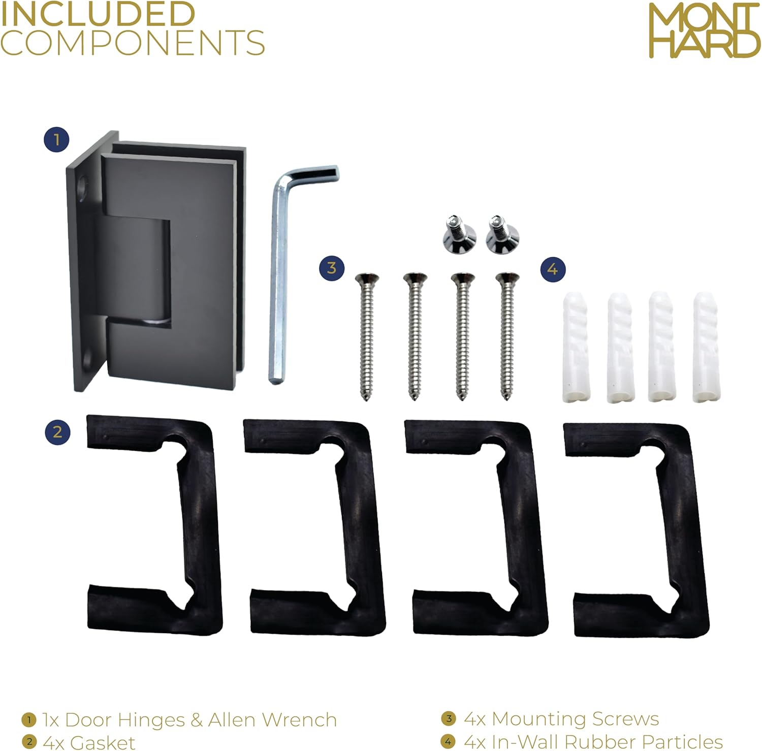 | Included Components | Gaskets, Hinge, Mounting Screws & In-wall Rubber, Template, Wrench Allen Key |