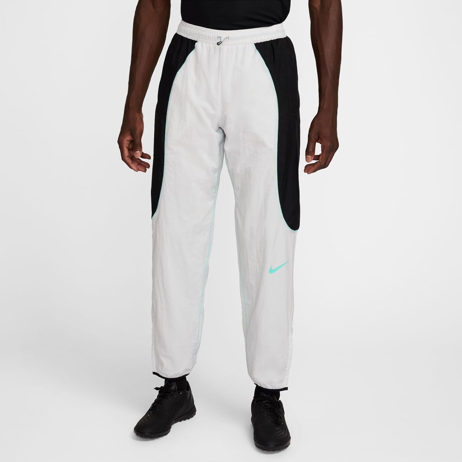 Crafted for aspiring soccer stars, the Nike Strike+ pants ensure peak performance even in unfavorable weather. A water-repellent nylon shell and mesh lining keep you dry and comfortable, while the tapered fit minimizes distractions during gameplay. 'Shown in Photon Dust/Black/Dynamic Turquoise/Dynamic Turquoise', Style: HJ3804-025, Size & Fit: Model wears size M, height 6'3"/191cm, Fit: Standard (easy and traditional), Size Guide available.