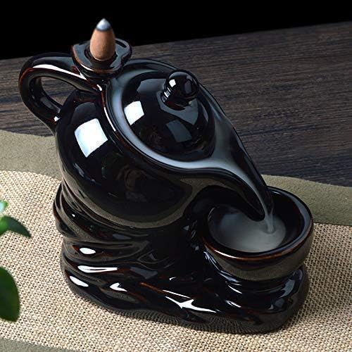 SamriddhiKrishna Kettle Backflow Incense Holder is a handcrafted decor piece designed to create a unique smoke waterfall effect. When used with backflow incense cones, the smoke flows downward, forming a soothing visual display. Its kettle-shaped design combined with a classic black finish makes it suitable for home decor, meditation corners, yoga spaces, pooja rooms, and office desks. The durable construction and detailed craftsmanship reflect traditional Indian artistry. A suitable choice for personal use or gifting on housewarming, festivals, and special occasions.
